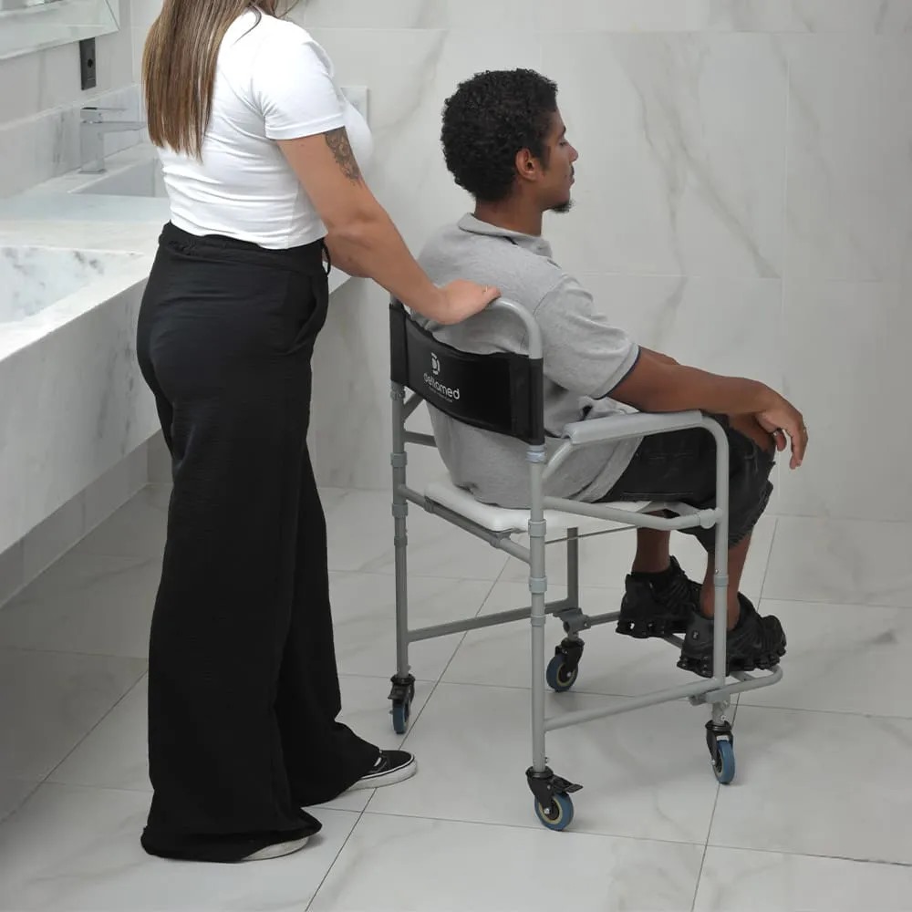 A Cadeira de Banho D30 Dellamed é uma solução inovadora, especialmente projetada para atender às necessidades de pessoas com mobilidade reduzida, como idosos e cadeirantes. Sua versatilidade 2 em 1 oferece tanto a funcionalidade de cadeira de banho para uso no chuveiro, quanto de cadeira sanitária sobre o vaso, proporcionando praticidade e conforto em um único produto.